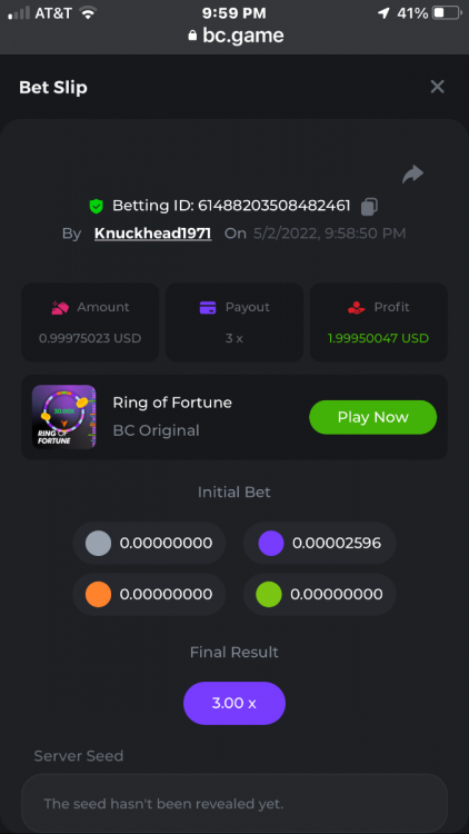 All wins are in order verified by time and date in succession grey first and green last bet was .00002596 BTC = $1.00 USD