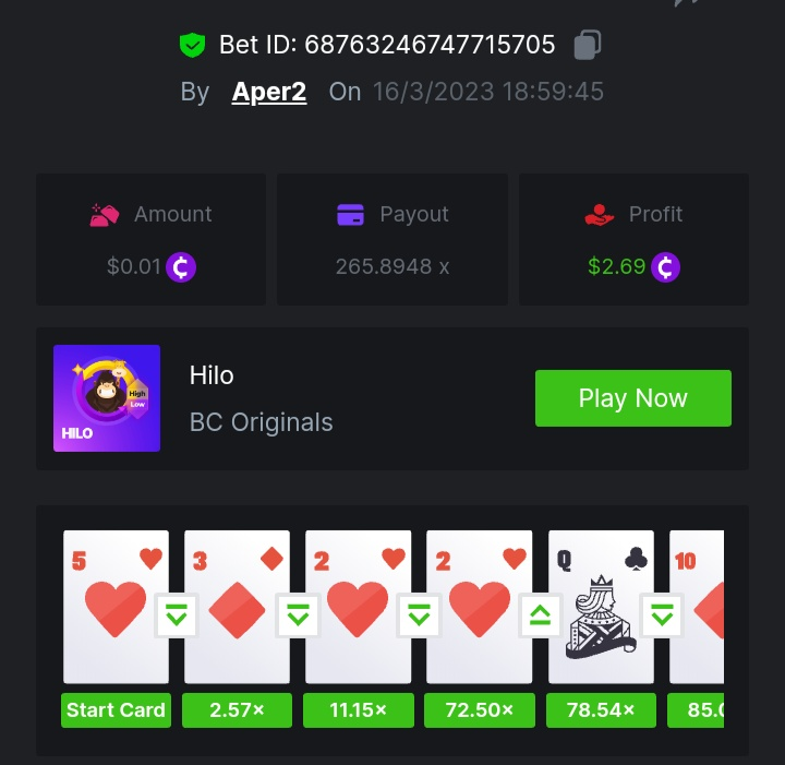 Chawee956 Posted March 16, 2023 Share Posted March 16, 2023 36 minutes ago, Maksypro said: Read Carefully Before Start To Hunt Daily Challenges #176 HI-LO Hunt : Win the highest pay out Min Payout requirement X100 Min Level 4 ๏ธDuration Starting : Now End time : 23.59 UTC Time How to Join? Make screenshot + paste your bet link + UID or Profile link Mini bet amount - 0.01$ Any coin allowed Reward Prizes 1st Place.....$7 BCD 2nd Place.....$5 BCD 3rd Place.....$4 BCD 4th Place.....$3 BCD 5th Place.....$2 BCD ๐ต Winners will be announcing next day after Roll Point! 2155834 ย ย Chawee956 User Id: 2155834 Link to comment Share on other sites More sharing options...